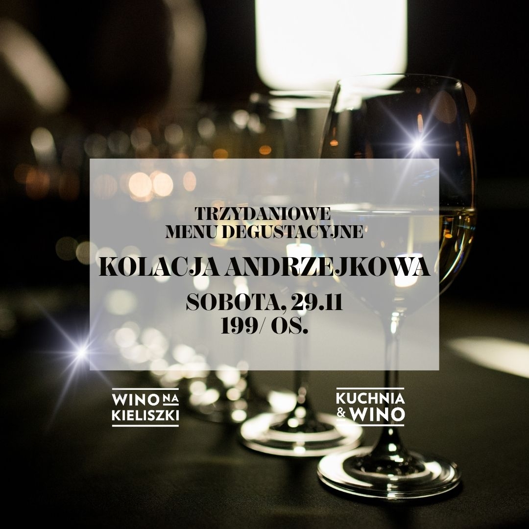 Na powitanie podamy kieliszek wina, do wyboru białe lub czerwone. Tego wieczoru na dziedzińcu Młyńska12 czeka na Państwa klimat paryskiego kabaretu z pokazami burleski oraz andrzejkowa zabawa taneczna. Z tych atrakcji mogą również skorzystać nasi Goście kolacji w Wino na Kieliszki!
